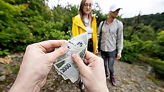 Delicious blonde babe, Jewel is fucking a stranger in the forest and enjoying it a lot